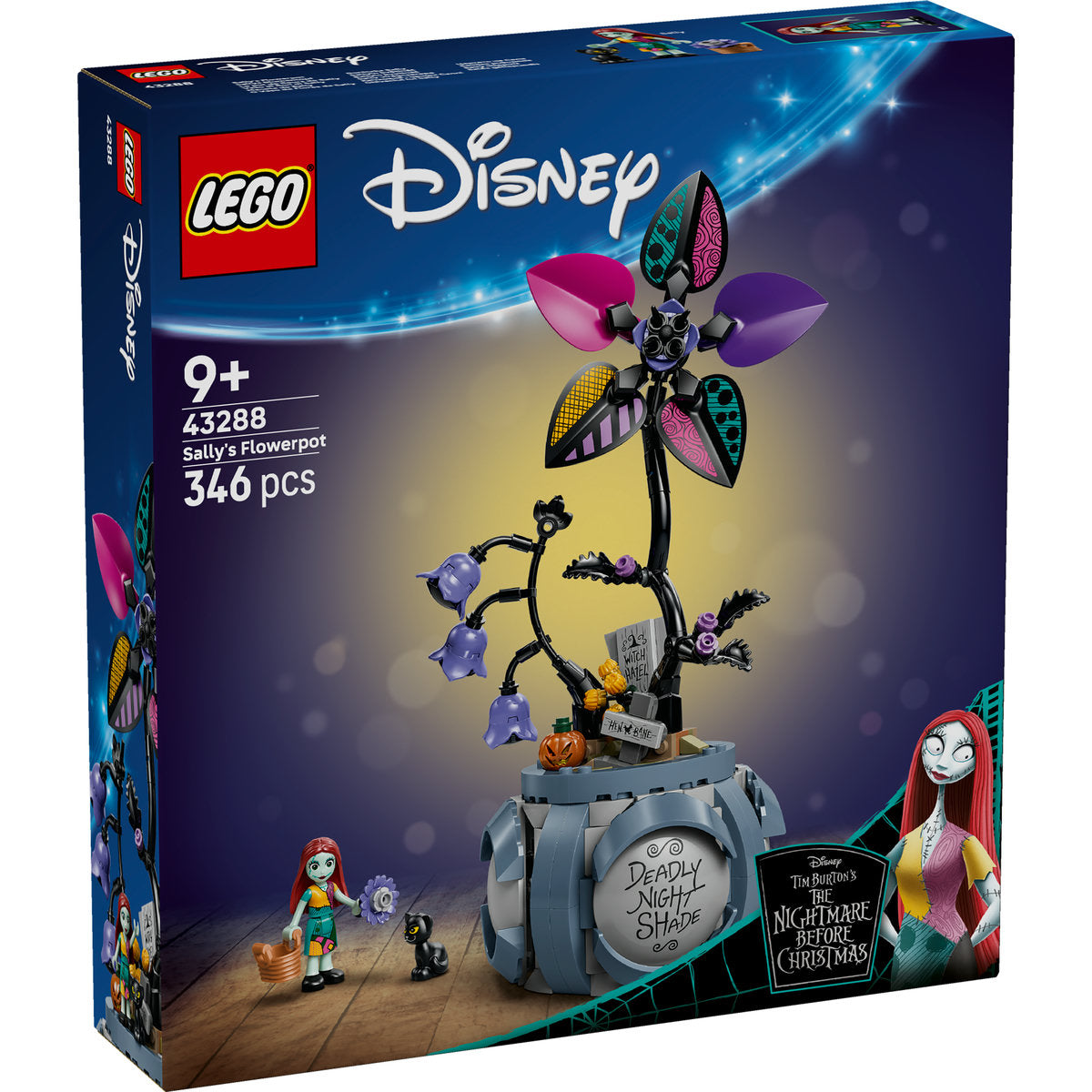 Ebben a LEGO® ǀ Disney Sally virágcserepe (43288) építőjátékban izgalmas meglepetések várnak a 9 éves és idősebb gyerekekre. Ez a virágos építőkészlet, amelynek ihletője Tim Burton Karácsonyi lidércnyomás című filmje ihletett, két LEGO ǀ Disney karakterrel ösztönzi a játékot: Sallyvel és egy kis fekete macskával. A készlet tartalmaz egy virágcserepet, benne 2 kockákból épített virággal, rejtett szobákkal és grafikás matrcikákkal belül és kívül. A belső térben egy kosár, egy üst, egy összeállítható asztal és még sok más is található. A játék után a figurák tárolás céljából beleférnek a dobozba.