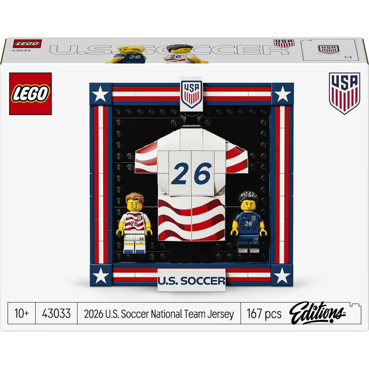 Légy kreatív és szurkolj az amerikai válogatottnak a 10 évnél idősebb fiúknak, lányoknak és sportrajongóknak készült LEGO® Editions A 2026-os amerikai labdarúgó-válogatott meze (43033) építőkészlettel!