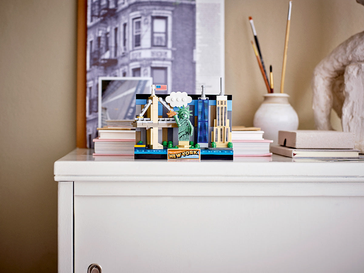 Keltsd életre New York sziluettjét ezzel a lenyűgöző, 3D-ben megépíthető LEGO® képeslappal. Ez a csodálatos ajándék a Big Apple leghíresebb látnivalóit tartalmazza: a Szabadság-szobrot, az Empire State Buildinget és a One World Trade Centert. A gyerekek az amerikai zászlót és a város nevét ábrázoló matricákkal is díszíthetik a képeslapot.