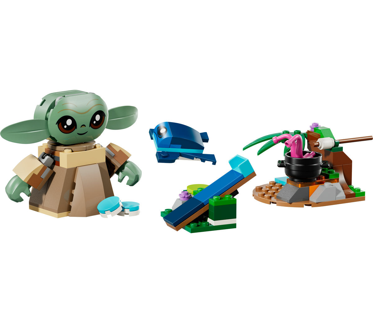Lődd ki a Sorgani békát a katapulttal! Alkosd újra a Star Wars: A Mandalóri™ jeleneteit a tűzhely körül egy főzőedénnyel, 2 csáppal, egy pálcikára tűzött mályvacukorral és 2 kék macaron kiegészítővel! Az egyik macaron belefér Grogu hasába.